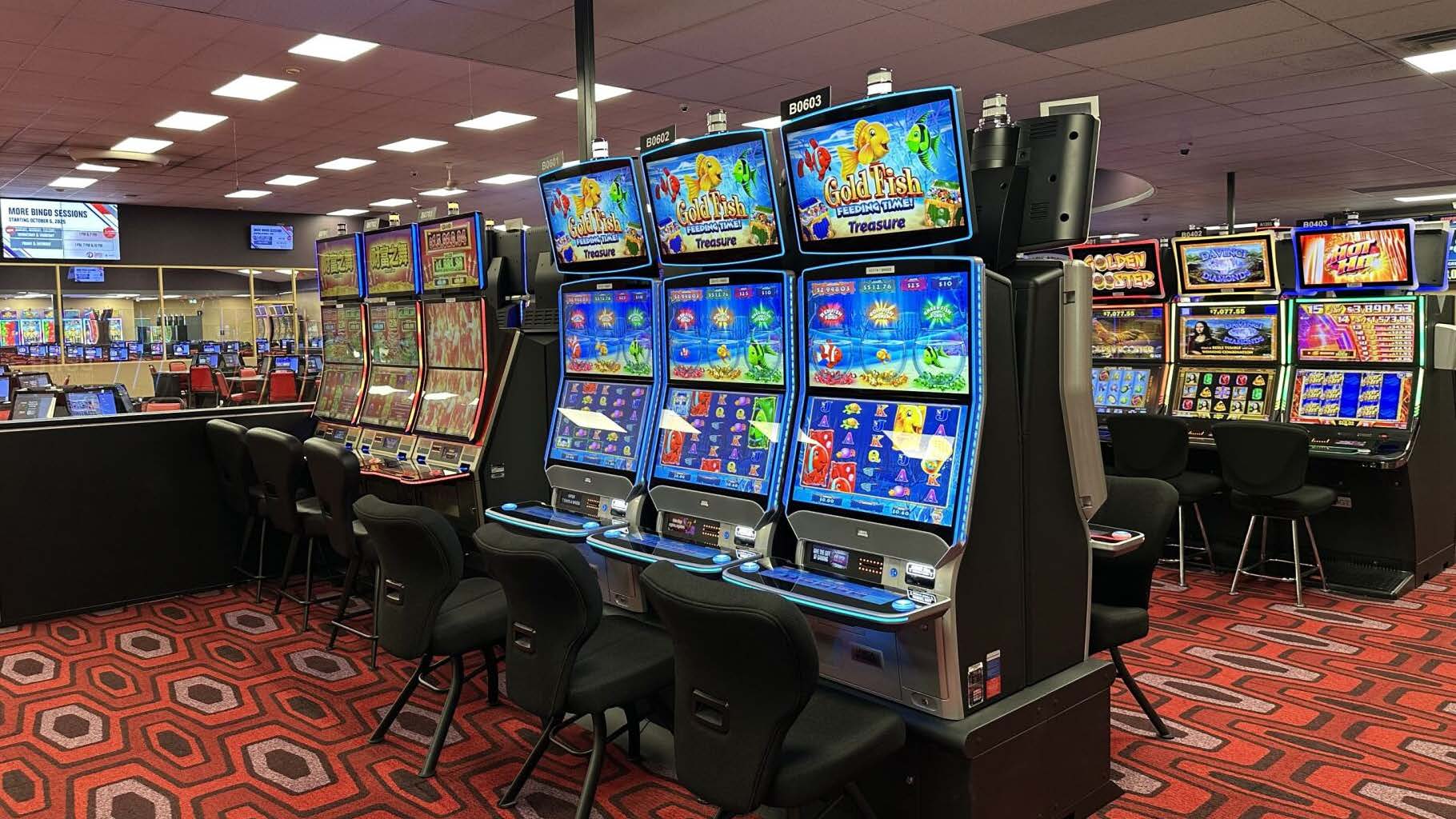 The minimum bet on the Vegas-style gaming machines varies. Some machines have a minimum bet as low as $0.40.